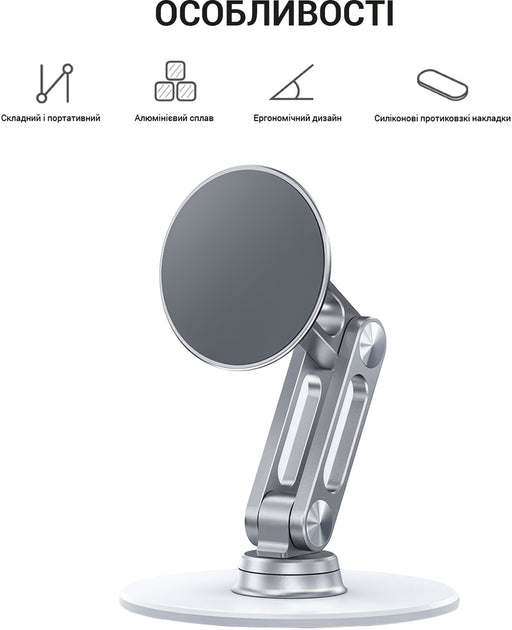 Магнітний механізм забезпечує швидке та безпечне кріплення, а обертання на 360° дає змогу змінювати положення пристрою в один рух. Компактний розмір і складна конструкція роблять підставку зручною для зберігання і транспортування. Силіконові антиковзкі накладки гарантують стійкість на будь-якій поверхні. OfficePro MS760 — це ідеальний аксесуар для роботи, перегляду контенту та відеодзвінків.